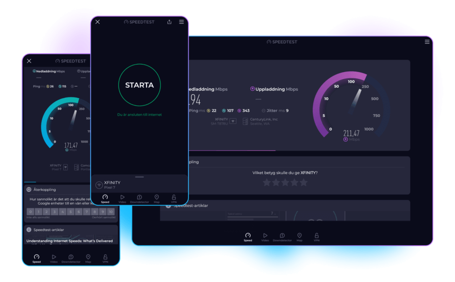 Vårt mål på Speedtest by Ookla® är att göra internet snabbare genom att tillhandahålla data och insikt i faktiska internethastigheter. Miljarder tester världen över låter oss möta dig där du finns med appar för de enheter du använder mest.
